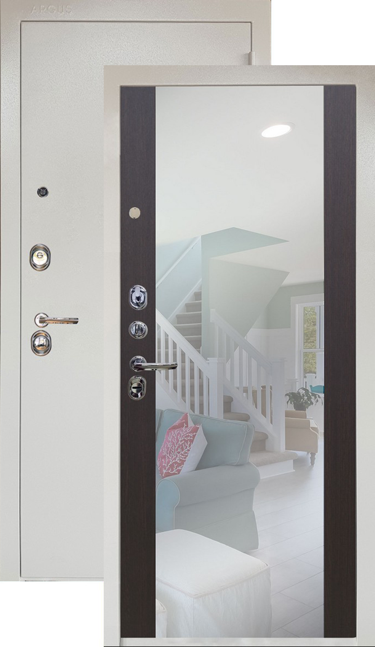 Повышенной надежности российская сейф-дверь с большим зеркалом на внутренней панели. Прекрасно подойдет для установки в квартиру. Солидная модель, которая хорошо защитит и подчеркнет статус.