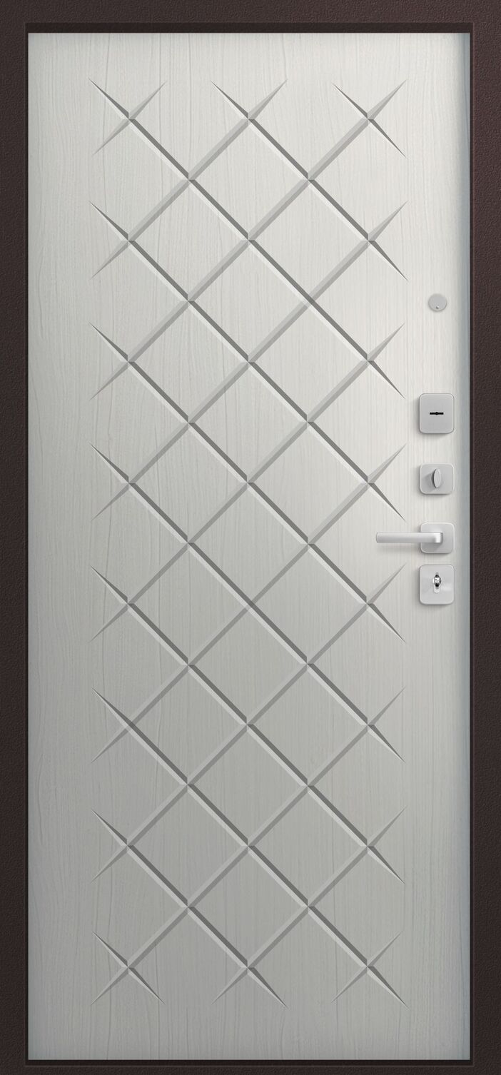 Дверь имеет хорошую прочность из-за толщины металла 1,4 мм. Оснащена двумя надежными замками, минимум один из которых имеет высокий третий класс взломостойкости по ГОСТ 5089-2003 и обладает повышенными охранными свойствами. Есть врезная броненакладка, защищающая цилиндровый замок от высверливания. Она утоплена в дверное полотно, поэтому ее практически невозможно сбить. Есть ночная задвижка — дополнительная защита от взлома. Никто не сможет зайти, вскрыв замок, когда вы дома.