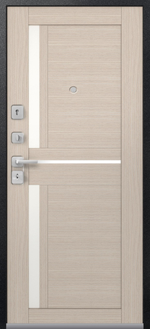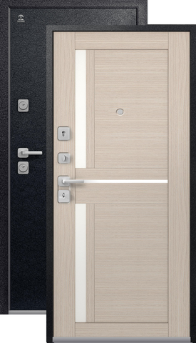 Повышенной надежности российская дверь со стильной внешней отделкой муар черный и красивой декоративной панелью толщиной 16 в цвете лиственница светлая. Прекрасно подойдет для установки в квартиру. Солидная модель, которая хорошо защитит и подчеркнет статус.