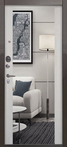 Повышенной надежности российская сейф-дверь с большим зеркалом на внутренней панели. Прекрасно подойдет для установки в квартиру. Солидная модель, которая хорошо защитит и подчеркнет статус.