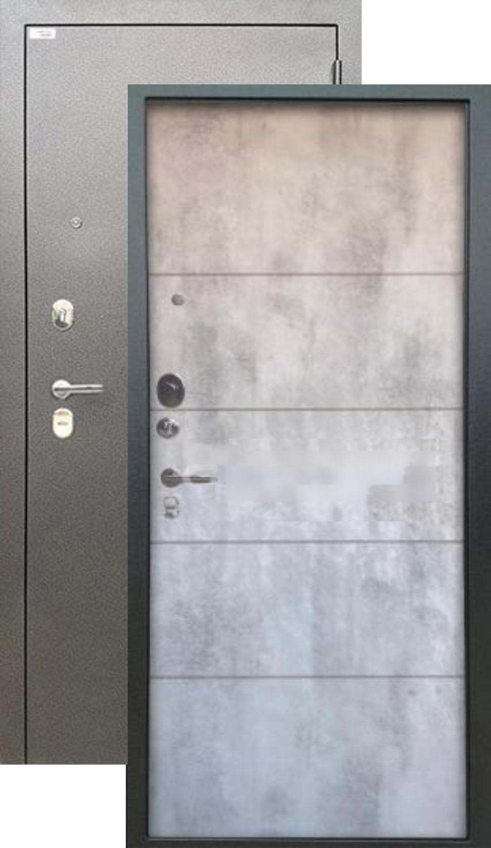 Повышенной надежности российская сейф-дверь c красивой декоративной панелью толщиной 12мм в цвете бетон светлый. Прекрасно подойдет для установки в квартиру. Солидная модель, которая хорошо защитит и подчеркнет статус.