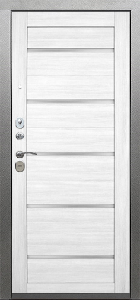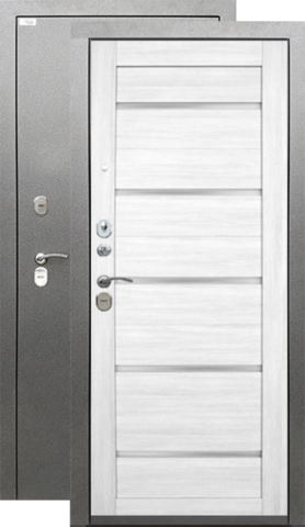 Имеет высокую прочность, благодаря толщине стали 1,8 мм. Оснащена двумя надежными замками, минимум один из которых имеет высший класс взломостойкости по ГОСТ 5089-2003 (4 класс). Есть врезная броненакладка, защищающая цилиндровый замок от высверливания. Она утоплена в дверное полотно, поэтому ее практически невозможно сбить. Есть ночная задвижка — дополнительная защита от взлома. Никто не сможет зайти, вскрыв замок, когда вы дома.
