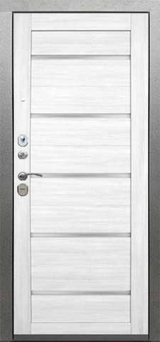 Повышенной надежности российская сейф-дверь c красивой декоративной панелью толщиной 12мм в цвете лиственница белая. Прекрасно подойдет для установки в квартиру. Солидная модель, которая хорошо защитит и подчеркнет статус.