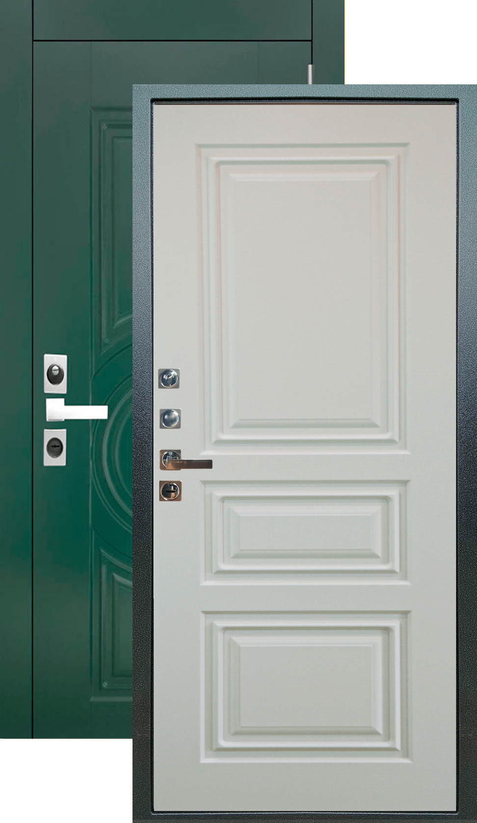 Имеет очень высокую прочность, благодаря толстой стали 2 мм. Один замок обеспечивает минимальную защиту от проникновения. Есть врезная броненакладка, защищающая цилиндровый замок от высверливания. Она утоплена в дверное полотно, поэтому ее практически невозможно сбить.